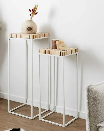 2 Selettes gigognes rondin blanc/marron - 34x90x34 cm