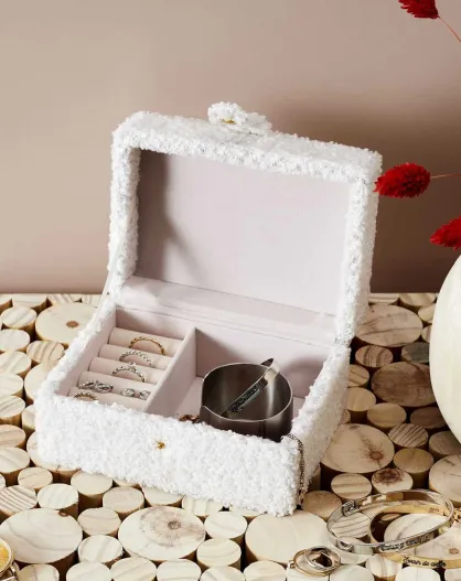 Boite à bijoux bouclette blanche - 11x8x15 cm