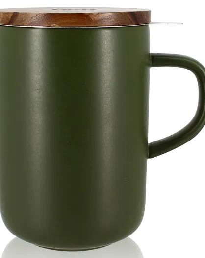 Tisanière avec couvercle en Grès & Acacia Juliet inox/kaki/naturel - 300ml