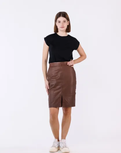 Jupe longue en Cuir Lazarie cognac