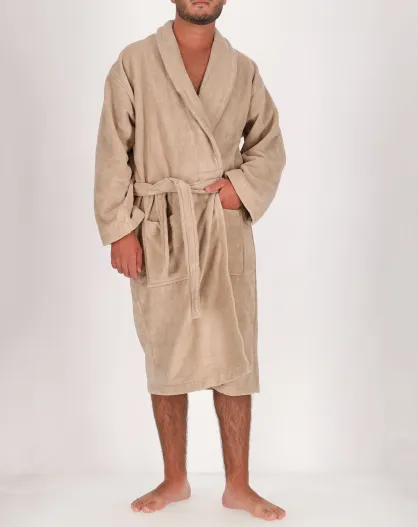 Peignoir Homme en coton et velours taupe