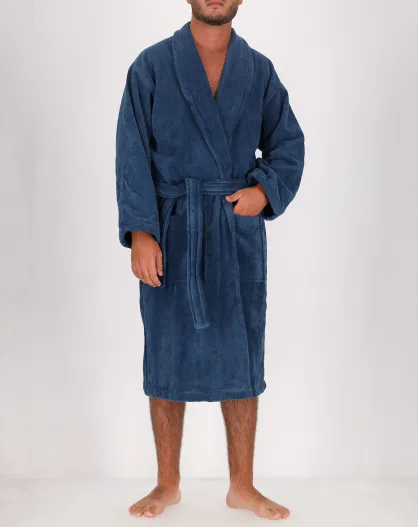 Peignoir Homme en coton et velours bleu jean
