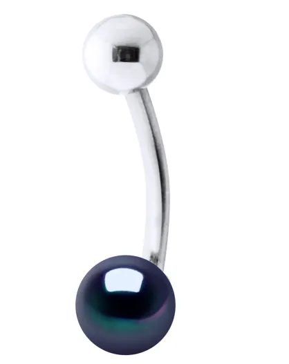 Piercing de Nombril en Argent rhodié & Perles de Culture d'Eau Douce Boutons black tahiti