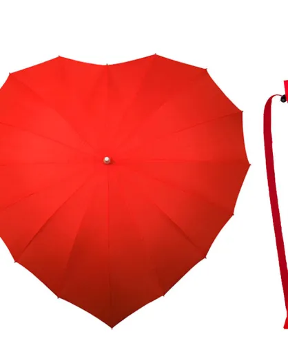 Parapluie Falconetti droit avec bandoulière - toile en forme de coeur rouge