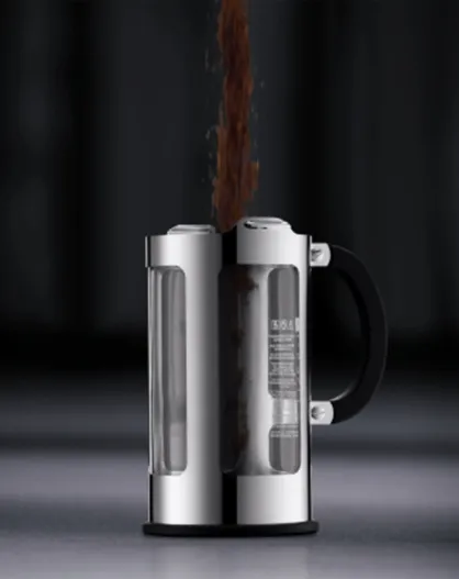 Cafetière à piston, 8 tasses, avec bec verseur Chambord gris chromé - 1L