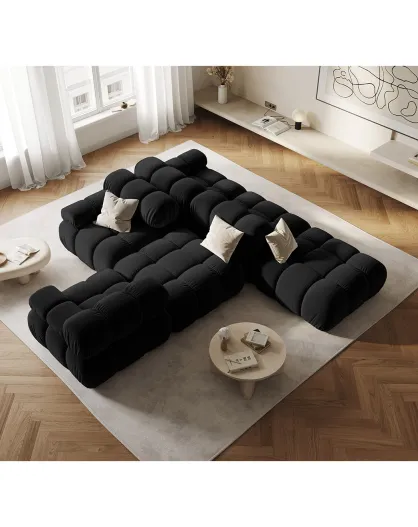 Chauffeuse Gauche Velours Tropea 4 Places noire - 282x94x63 cm