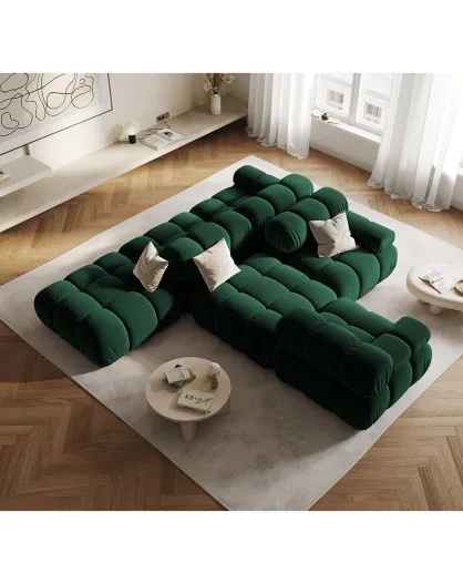 Chauffeuse Gauche Velours Tropea 4 Places vert bouteille - 282x94x63 cm