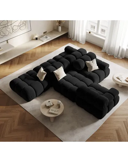 Chauffeuse Droit Velours Tropea 4 Places noire - 282x94x63 cm