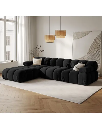 Canapé Modulaire Velours Tropea 4 Places noir - 282x188x63 cm