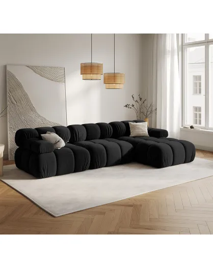Canapé Modulable Droit en Velours Tropea 4 Places noir - 285x157x63 cm