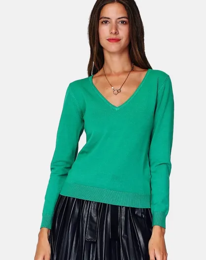 Pull en Cachemire 3 fils mélangé Iris vert virid
