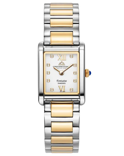 Montre Femme Quartz en Acier & Diamants 0.0415 ct Fontaine argenté/doré
