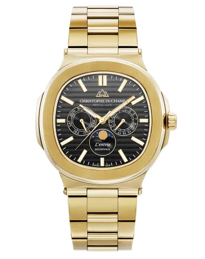 Montre Homme Quartz en Acier L'Envie Moonphase dorée