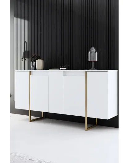 Buffet Luxe blanc/doré - 160x35x80 cm
