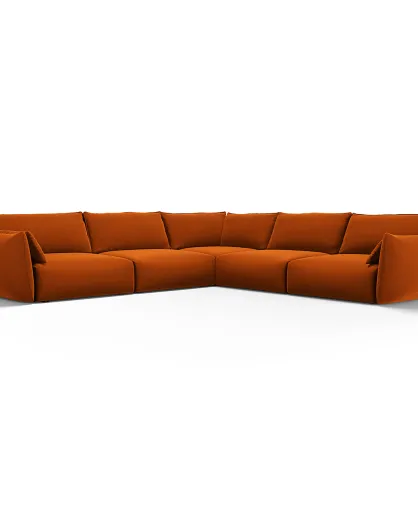 Canapé d'angle Droit modulaire Velours Chiara 4 places terracotta - 259x155x74 cm