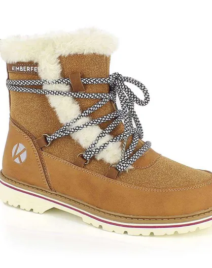 Boots Après-ski en Velours de Cuir & Laine Far Side camel/blanc