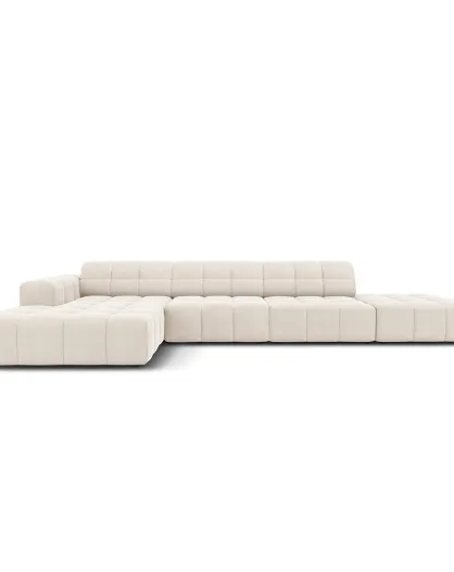 Canapé d'angle Gauche Velours Chicago 5 Places beige clair - 341x166x70 cm