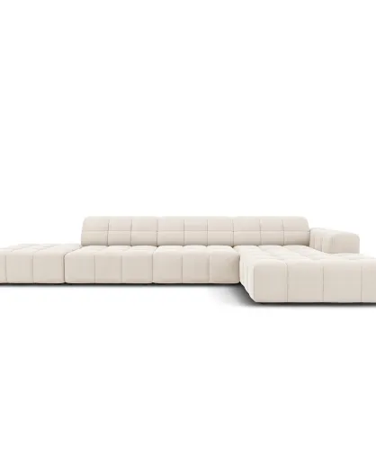 Canapé d'angle Droit Velours Chicago 5 Places beige clair - 341x166x70 cm