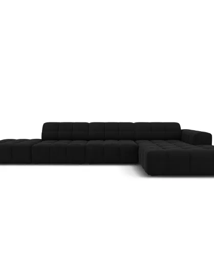 Canapé d'angle Droit Velours Chicago 5 Places noir - 341x166x70 cm