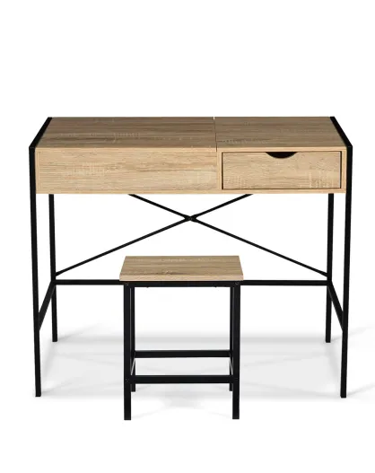 Coiffeuse industrielle alana avec tabouret bois/noir - 83x39.5x75.5 cm