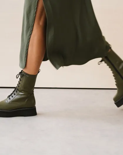 Boots en Cuir Daffia kaki - Talon 4.5 cm