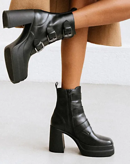 Bottines en Cuir Paillotte noires - Talon 9.5 cm
