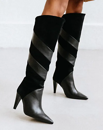 Bottes en Cuir et Velours de Cuir Biaggio noires - Talon 9 cm