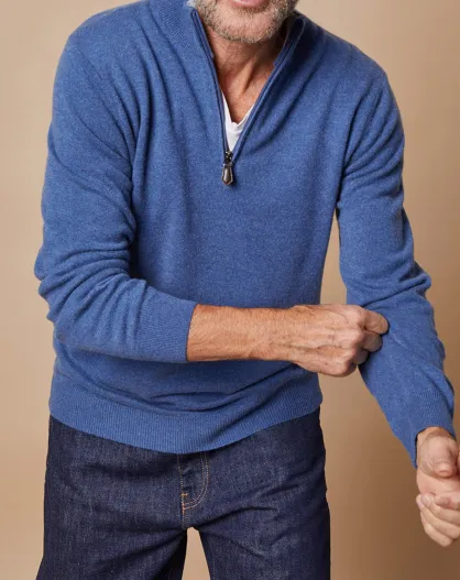 Pull 100% Cachemire 4 fils John col camionneur bleu denim foncé/gris
