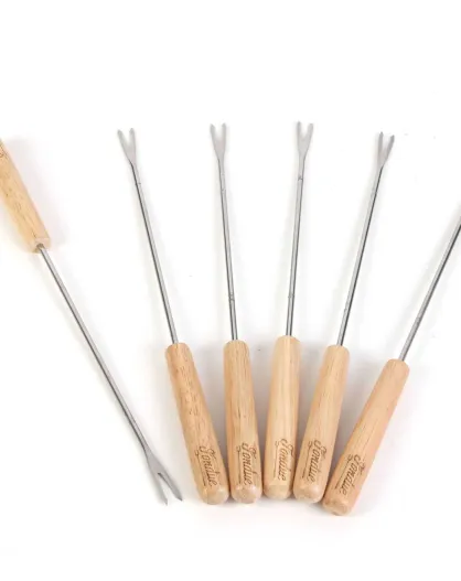 6 Piques à fondue bois/inox