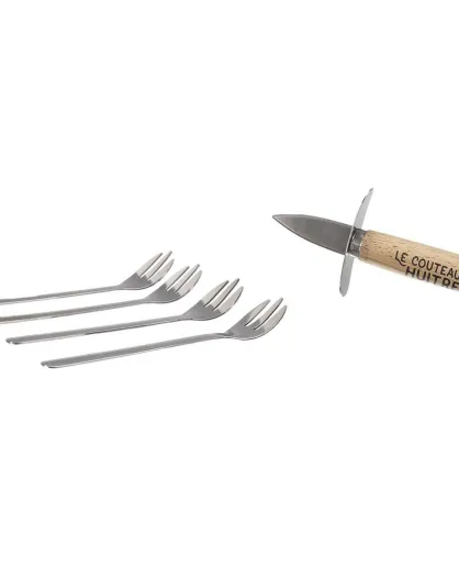 Coffret à huitres couteau + 4 fourchettes bois/inox