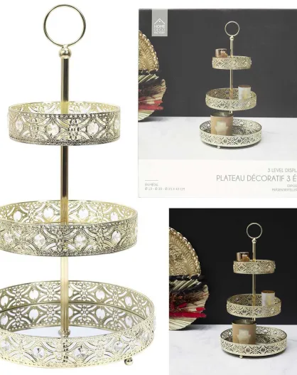 Serviteur décoratif 3 étages metal/doré - 25x46.5x25 cm