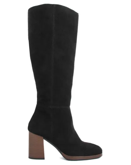 Bottes en Velours de Cuir Agathe noires - Talon 8.5 cm