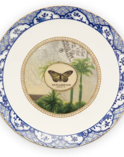 6 Assiettes plates en Porcelaine Héritage Papillon bleues - D.15.7 cm