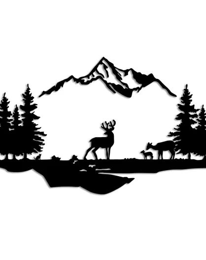 Décoration mural paysage cerf et forêt noir - 38x11 cm