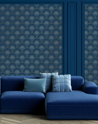 Papier Peint Han'i cobalt doré - 53x1000 cm