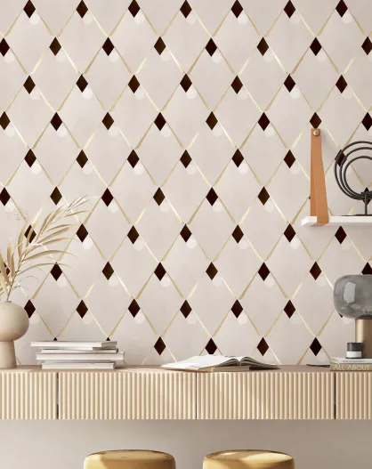 Papier Peint Arlequin lin doré - 53x1000 cm
