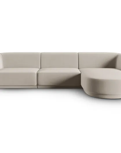 Canapé d'angle Droit Modulaire Velours Lionel 4 Places beige - 259x155x74 cm