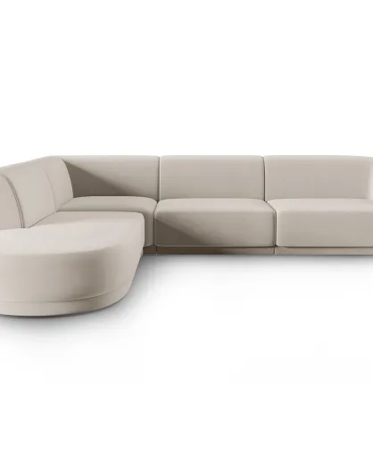 Canapé d'angle Gauche Modulaire Velours Lionel 5 Places beige - 252x220x74 cm