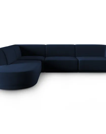 Canapé d'angle Gauche Modulaire Velours Lionel 5 Places bleu roi - 252x220x74 cm