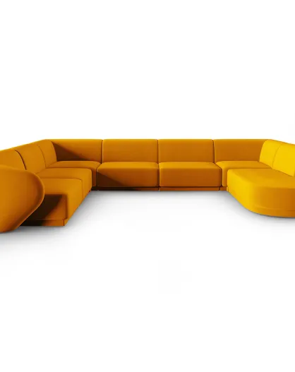 Canapé d'angle Gauche Panoramique Modulable en Velours Lionel 8 Places jaune - 320x252x74 cm
