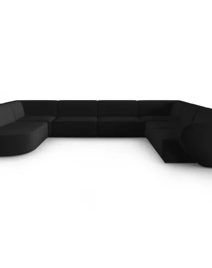 Canapé d'angle Droit Panoramique Modulable en Velours Lionel 8 Places noir - 320x252x74 cm