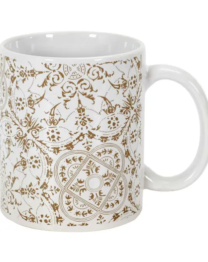 2 Mugs motif faïence blanc/taupe - 12.5x9.2x8 cm