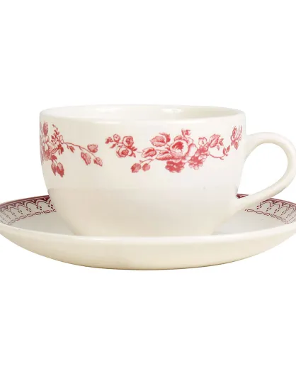 Tasse à thé avec soucoupe Faustine bordeaux - 11x8.5x6 cm