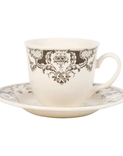 Tasse à thé avec soucoupe Clothilde grise - 11x8.5x7.5 cm