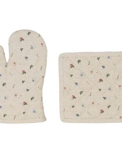 Set Gant et Manique en Coton & Lin Petite Fleur naturel