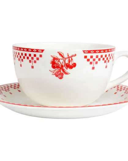 Tasse petit déjeuner avec soucoupe Damier rouge - 16x13.5x8 cm