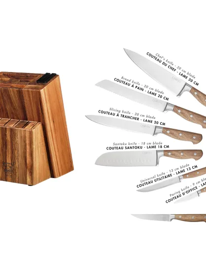 Bloc avec couteaux de cuisine et couteaux à steak Jakob Loviisa bois mat - 14 pièces