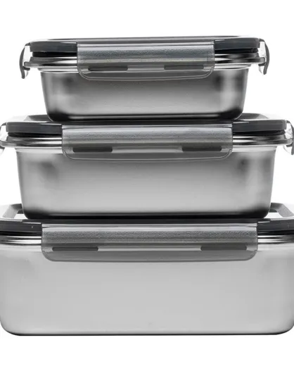 3 Boîtes de conservation rectangulaires inox argentées