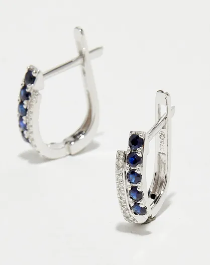 Boucles d'oreilles Diamants 0.05 ct & Saphirs 0.33 ct or blanc