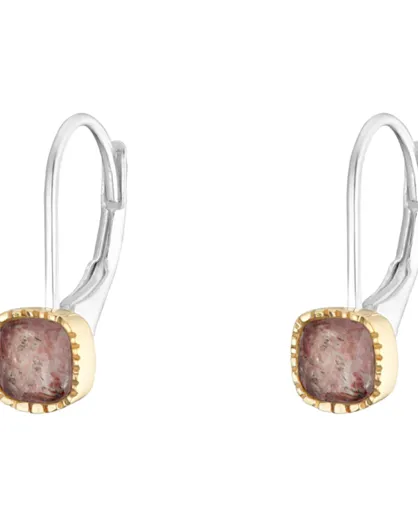 Boucles d'oreilles en Argent, Laiton & Quartz fraise